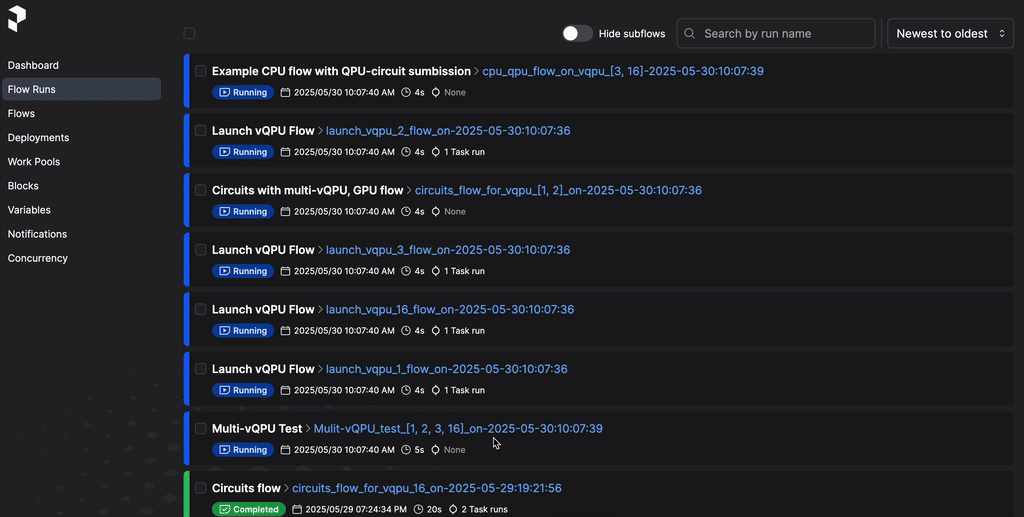 QBitBridge is framework for running hybrid workflows containing (v)QPU, GPU and CPU oriented tasks on HPC systems. It is meant to ease the integration of quantum computing acceleration into a workflow, allowing rapid prototyping of quantum acceleration tasks. The framework uses Prefect and Slurm (for more details see Description).